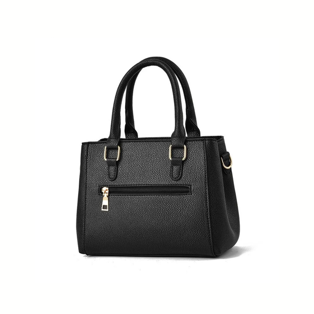 . Handles: Fixed double top handles + adjustable/removable long strap