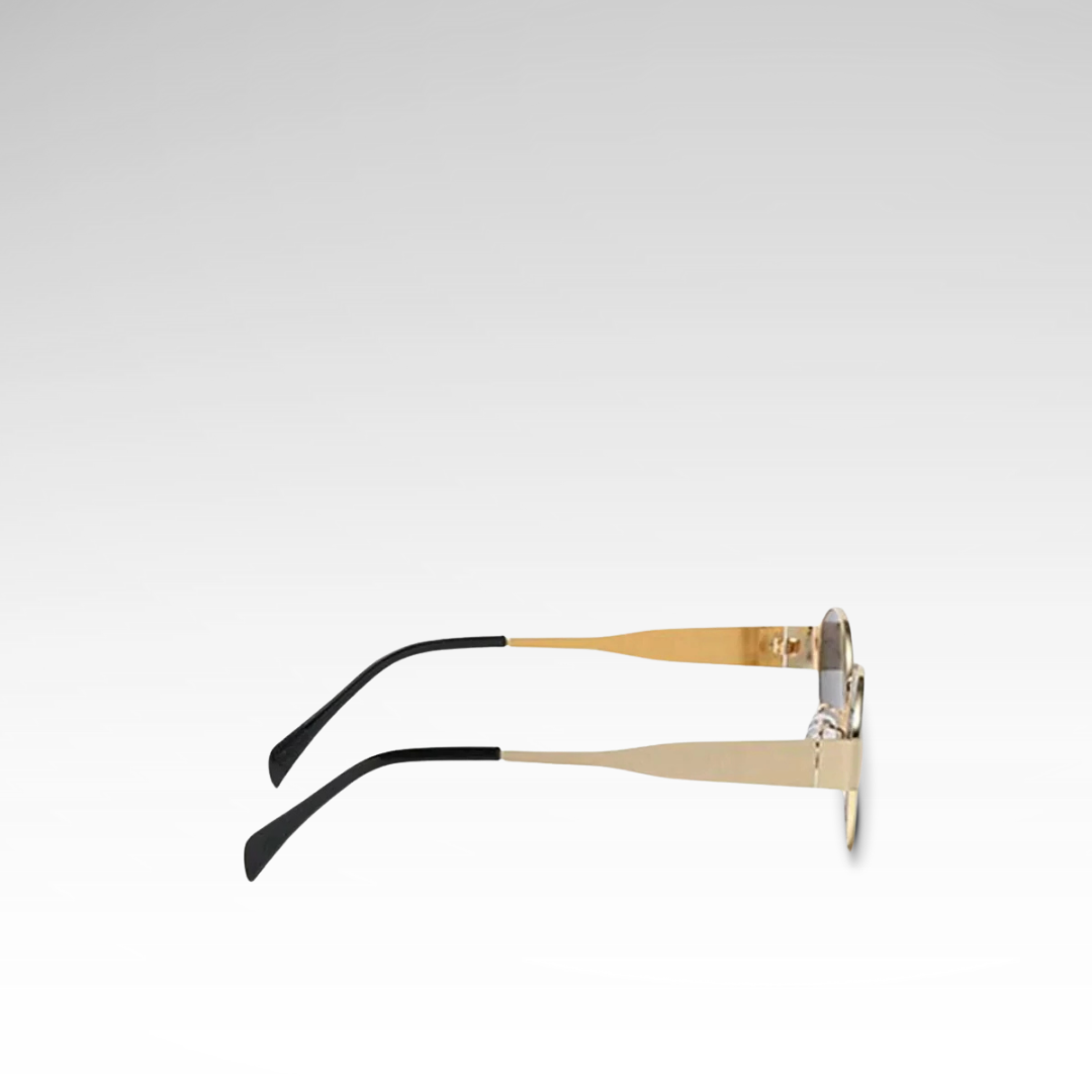 Discover the timeless oval design with the Éclat D'Or sunglasses. Inspired by a retro aesthetic, the model features a crafted metallic alloy frame, blending contemporary fashion with classic charm for a truly distinctive accessory.