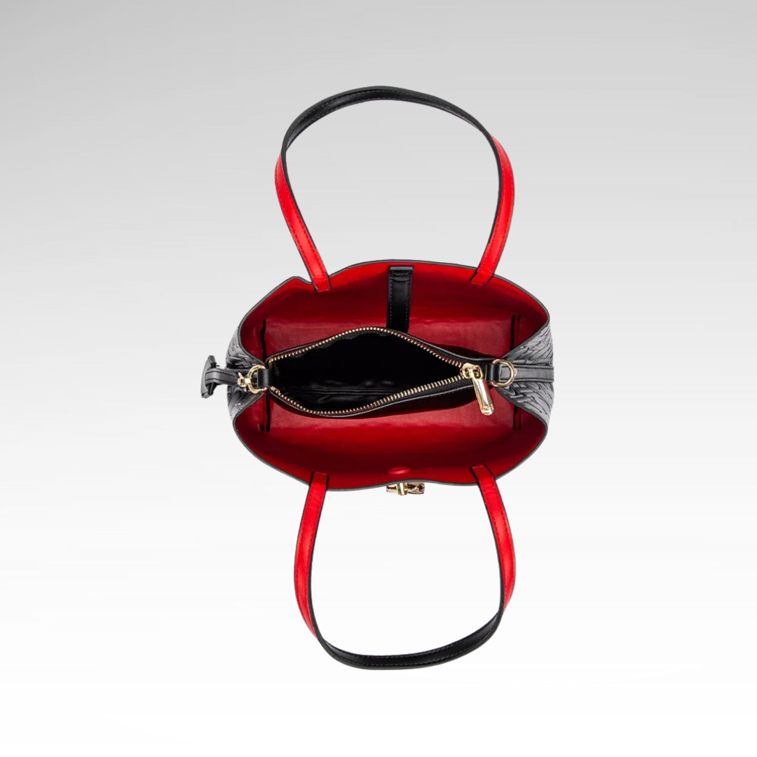 The Éclat Monogram Tote is a celebration of design and functionality, where the exclusive brand monogram comes to life on refined leather. Its vibrant red interior creates an audacious contrast, while the structured silhouette and padlock clasp express a touch of nobility and security.