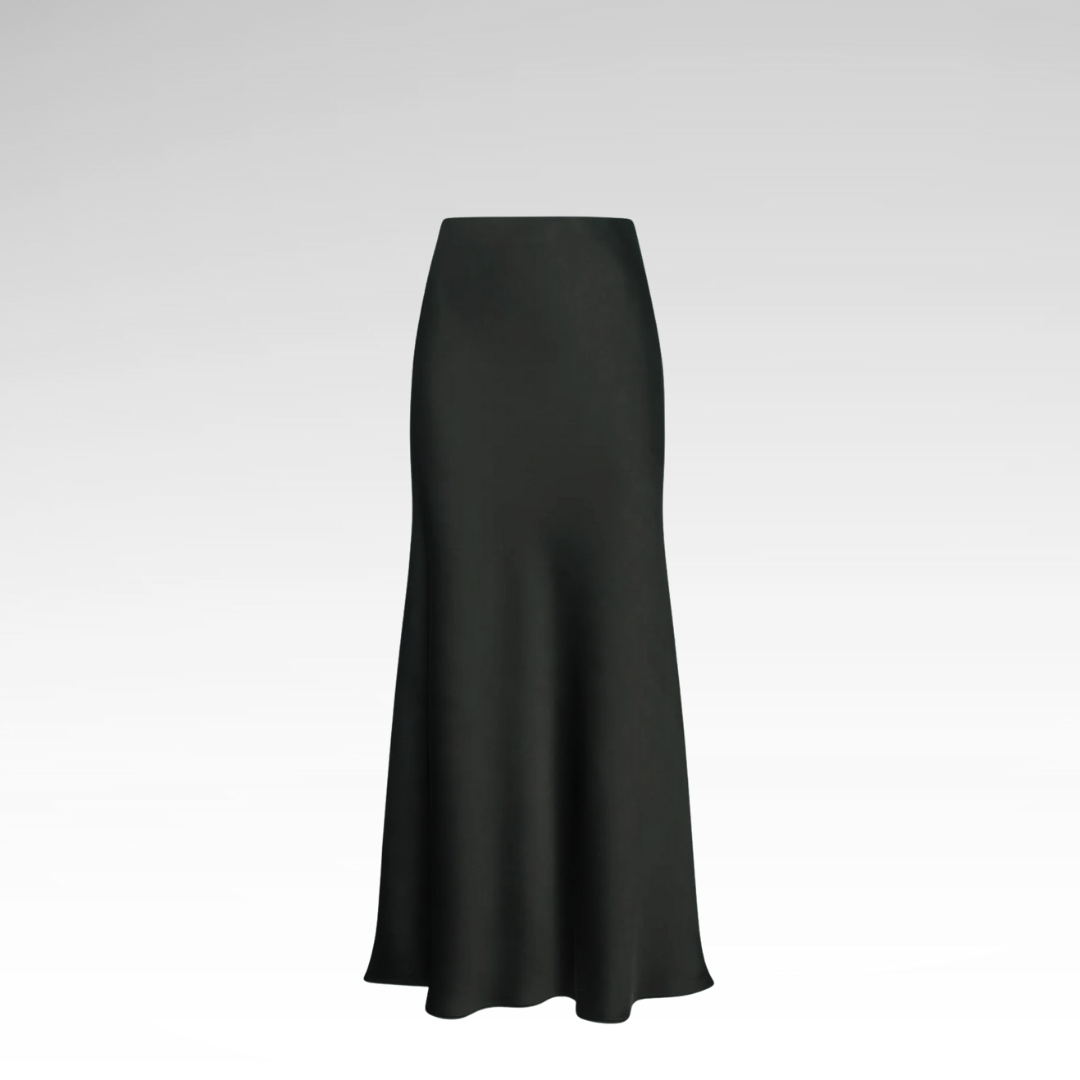Discover the Satin Silhouette Skirt, a piece that celebrates timeless elegance and graceful movement. Crafted from a silky-touch fabric with a fluid drape, this high-waisted skirt embraces the silhouette with sophistication, gently flaring towards the hem. It's the perfect choice for a look that combines discreet luxury and versatility.