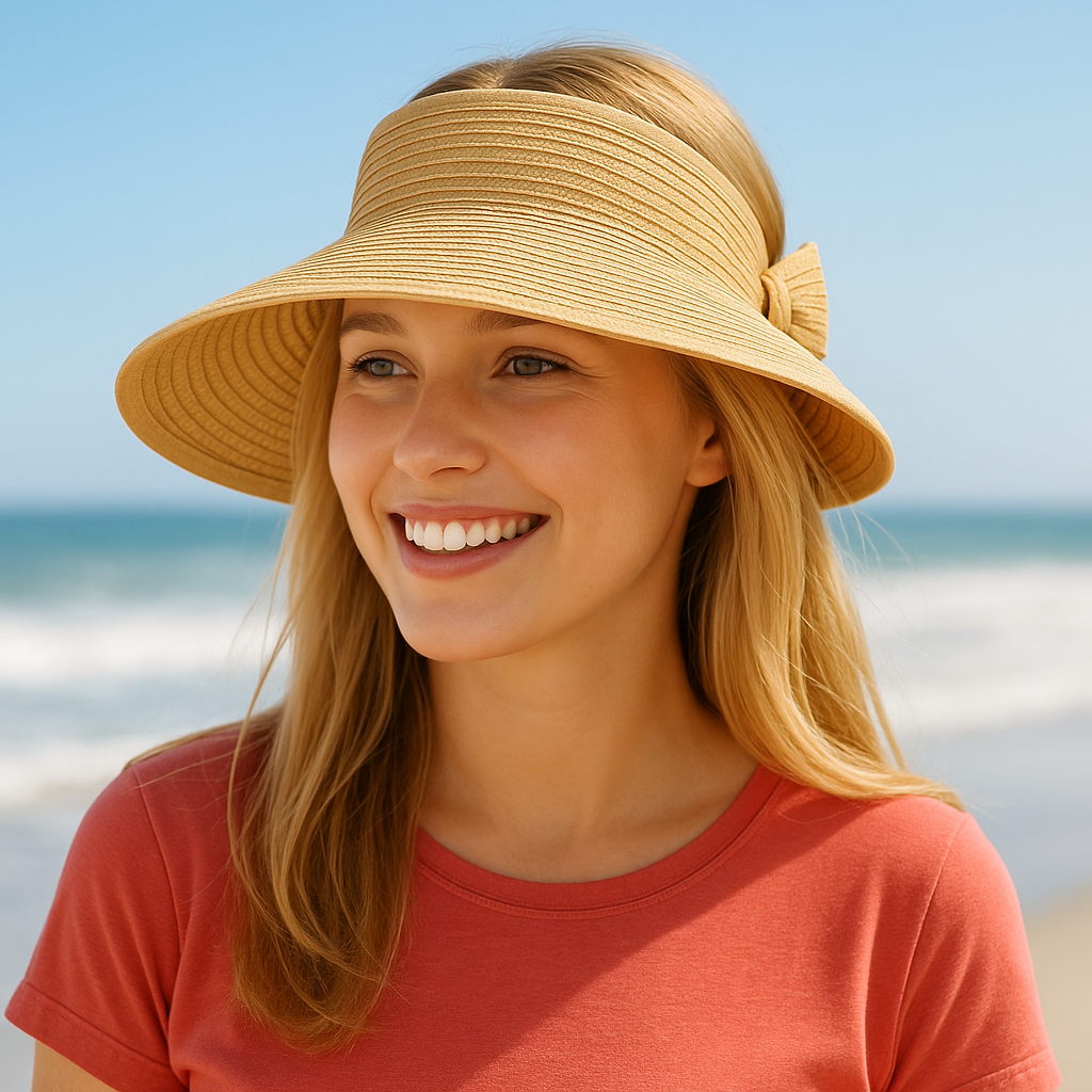 With a foldable design and wide brim, this natural straw visor offers protection and lightness on sunny days. A practical and charming accessory, perfect to complete casual looks during strolls, travels, and seaside moments.